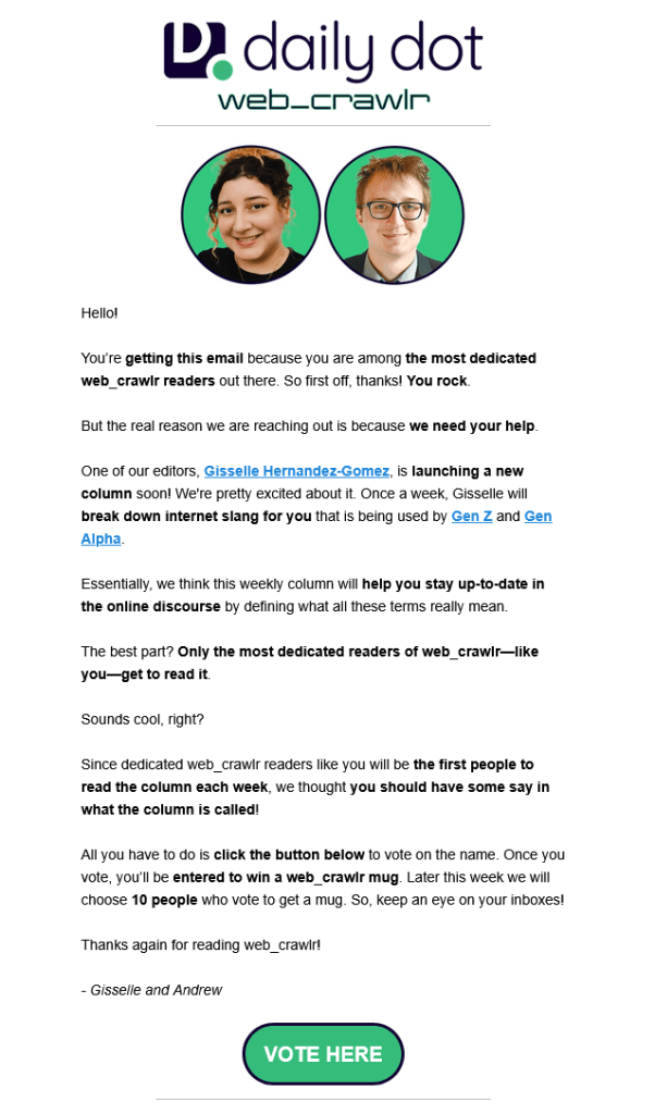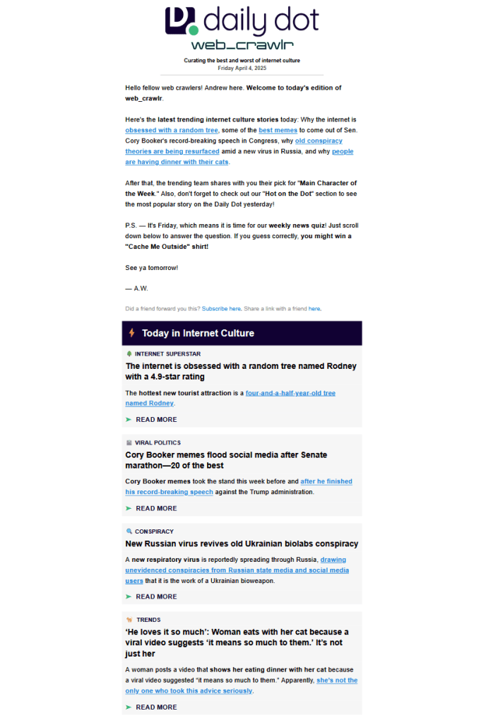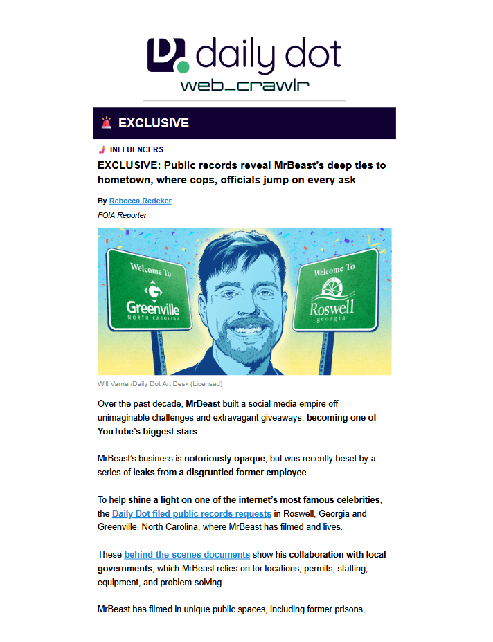 Here a few examples of some of the special edition sends. These included audience engagement-specific newsletters, end-of-year reader surveys, and other ones that highlighted investigative work done by the staff. Click on the image below to see a PDF version of the full newsletter.